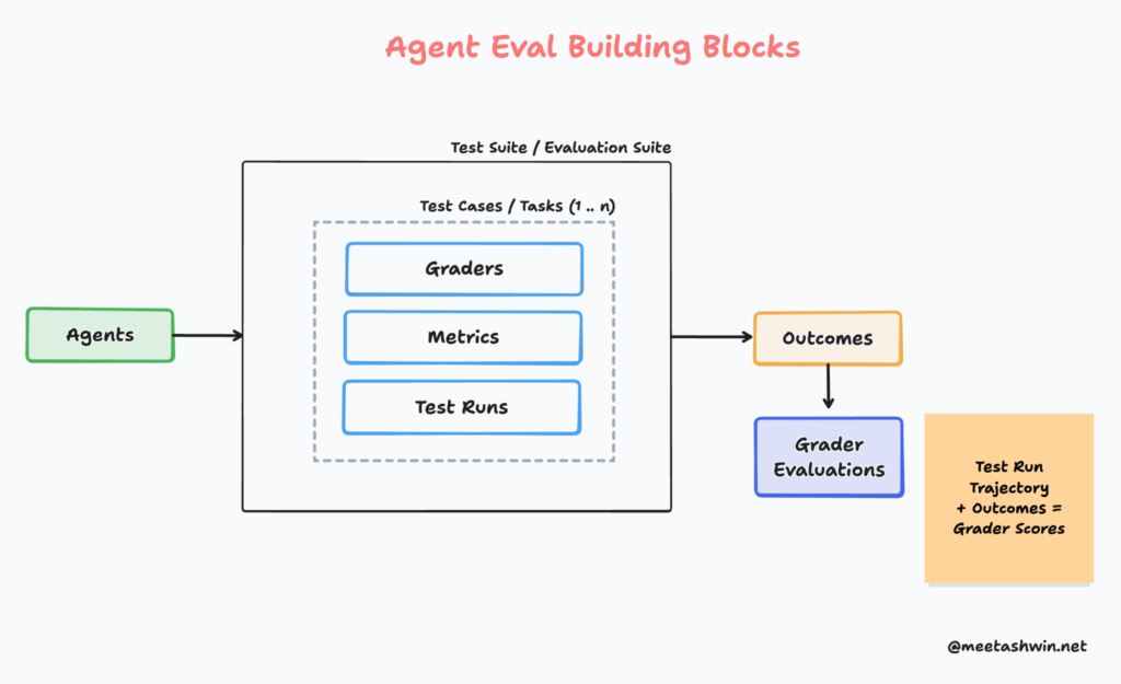 Graders – Automated or human evaluators that score outcomes against predefined rubrics, ground truth data, or reference outputs. Graders determine whether the agent succeeded and how well it performed.